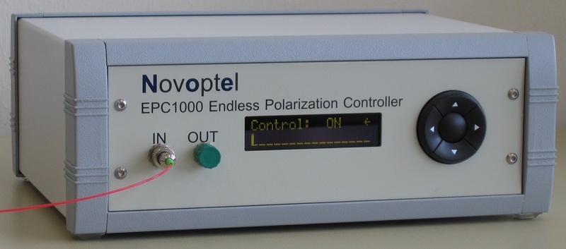 偏振控制在电信领域一个特别有吸引力的应用是高速、低功率、低成本的偏振复用DQPSK调制信号的自动偏振解复用。Novoptel的高速偏振控制器(高速偏振跟踪器)EPC1000把未知的、可变的输入偏振态(或一对正交偏振态)转换为通常是固定的,但也可以是可变的输出偏振态(或正交偏振态)。跟踪或控制速度为40 krad/s,最快可达100 krad/s。